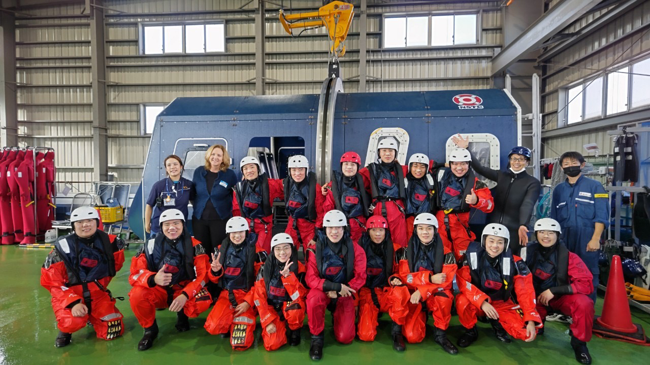 HSEの重要性やHUET訓練を体験し、海洋におけるエネルギー生成の仕組みについて理解を深めることができた。実際の現場で必要となる安全意識や行動を学べたことは大変貴重であり、今後の学びや活動に活かせると強く感じた。普段触れることの少ない分野に触れられ、とても有意義な機会となった。